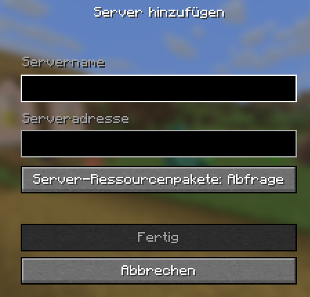 Da wir gemeinsam in einer Mehrspieler-Welt spielen, geht bitte auf „Mehrspieler“ und dann auf „Server hinzufügen“.