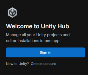 Bevor du mit Unity loslegen kannst, musst du dich im Unity Hub mit einem Unity-Account (Unity ID) anmelden. Falls du noch keinen hast, kannst du direkt im Hub einen neuen Account erstellen.