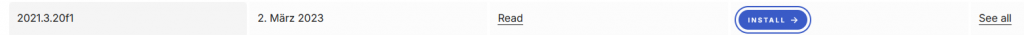 Suche 2021.3.20f1 in der Liste und klicke auf den Button „Unity Hub“ rechts daneben.